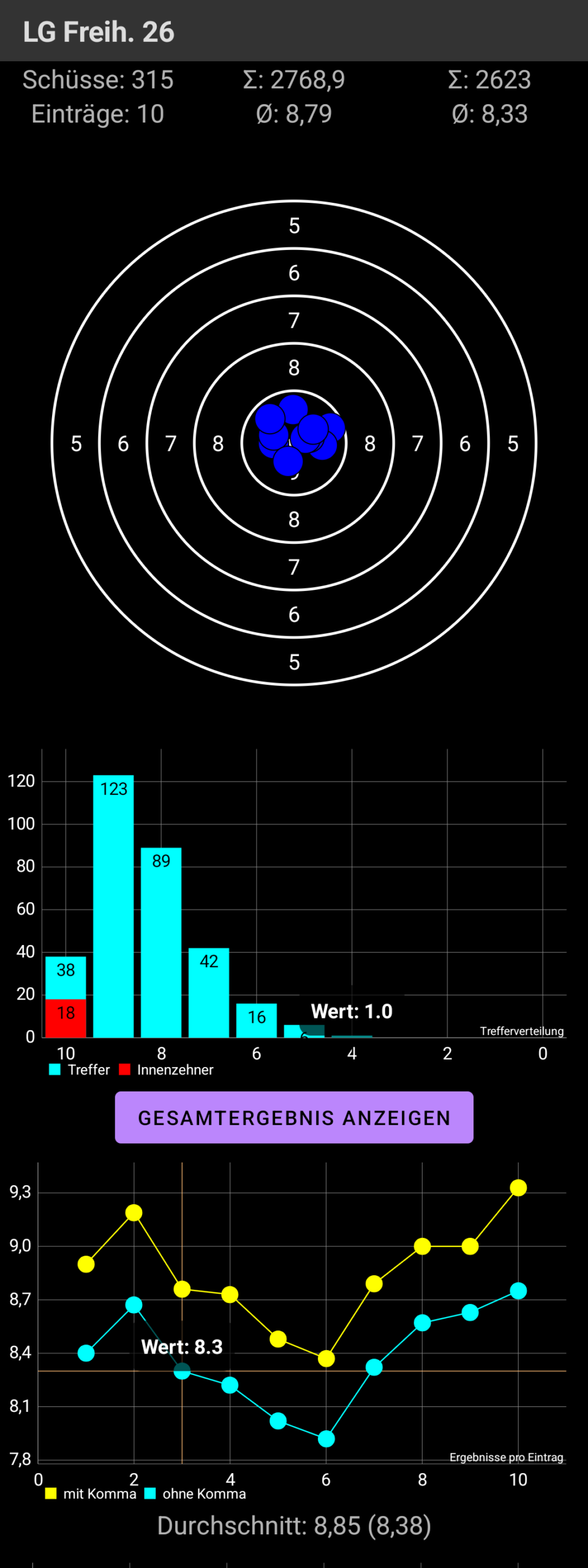 In der Schießapp können Meyton Ergebnisse hinzugefügt und ausgewertet werden.